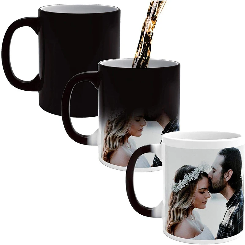 Amazon Com Magic Custom Photo Color Changing Coffee Mug Cup Personalized Diy Print Ceramic Hot Heat Sensitive Cup Add Your Photo Text Home Kitchen